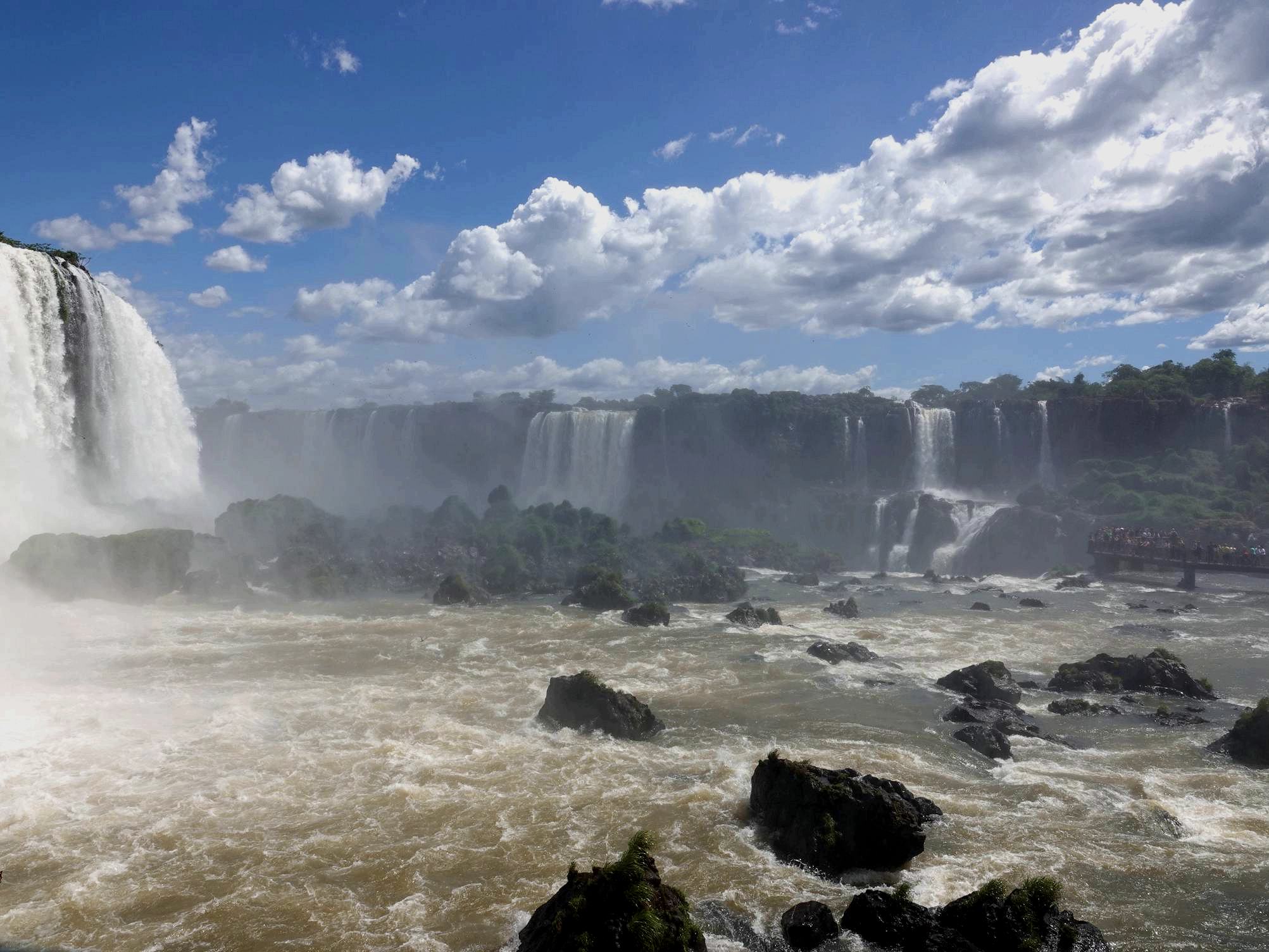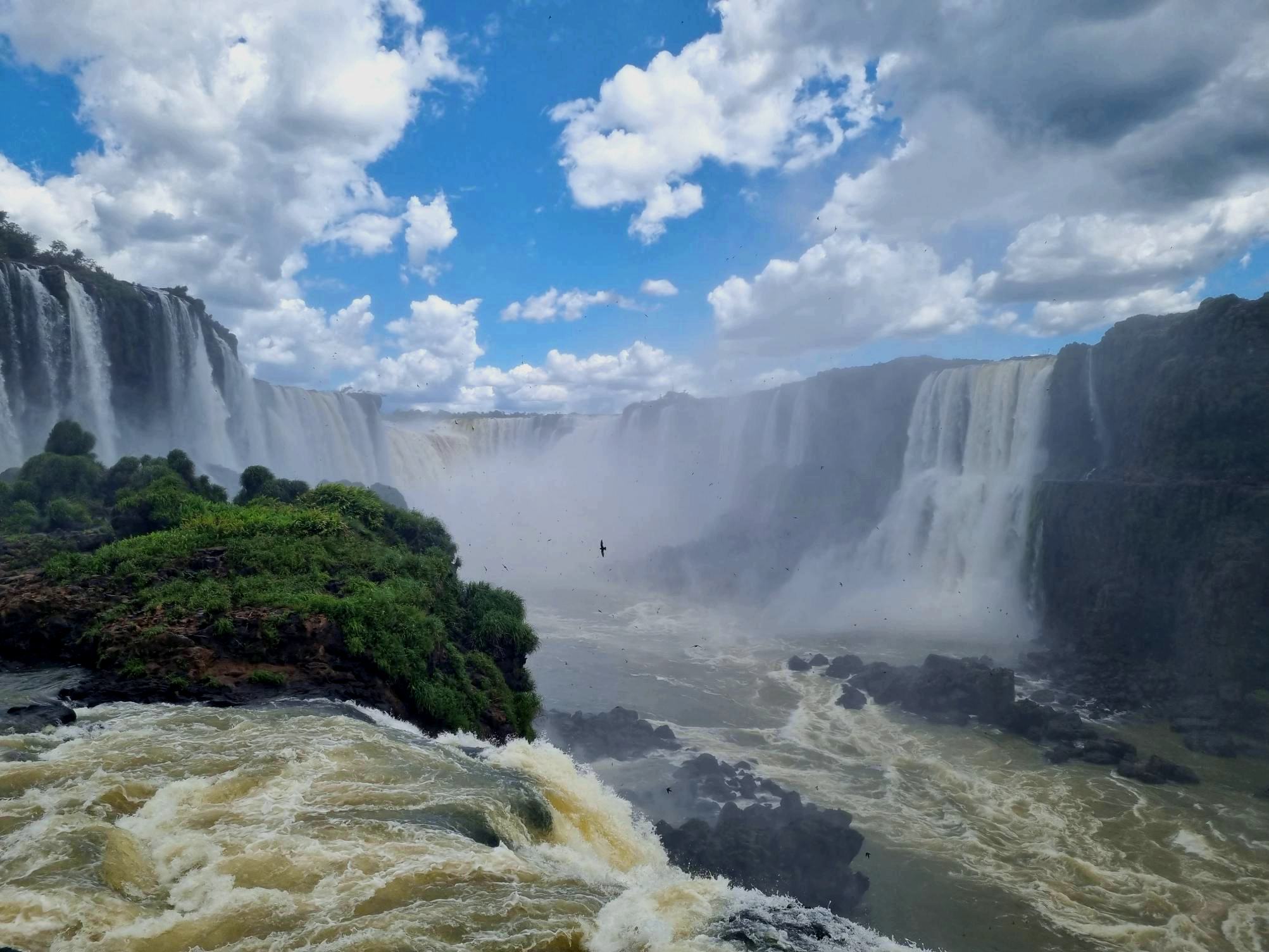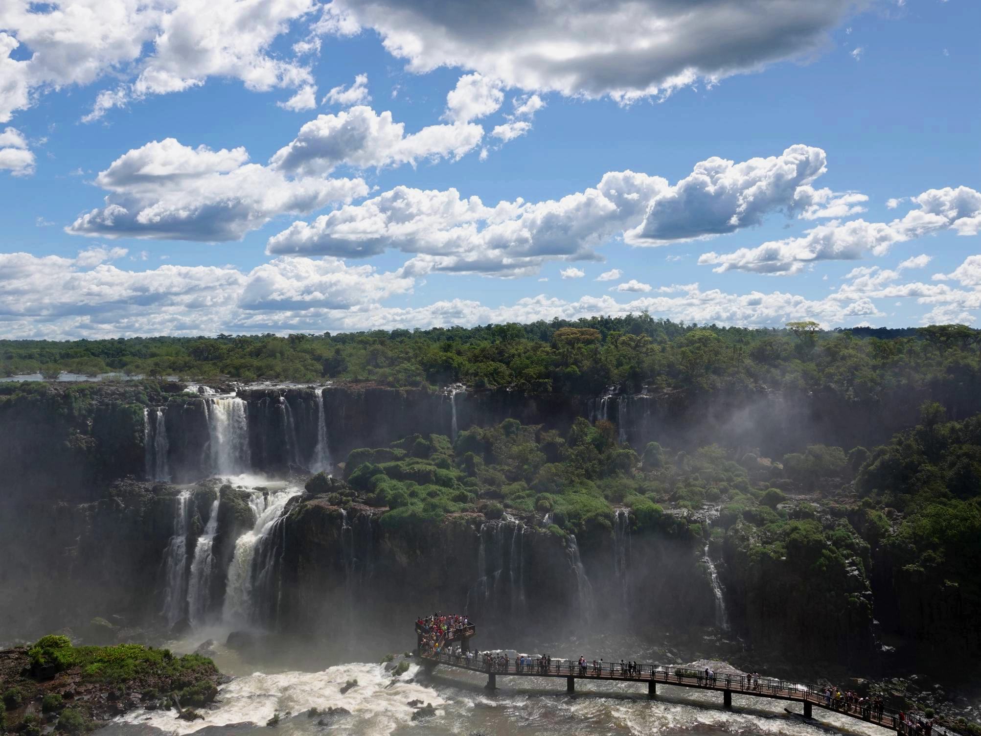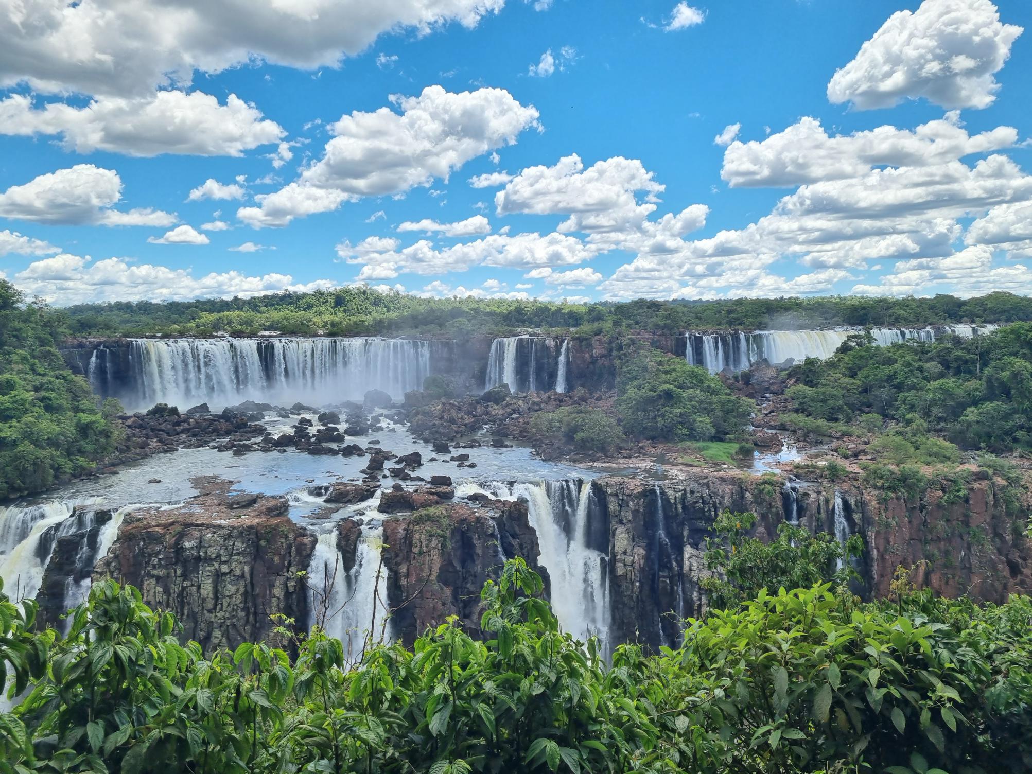 Река Игуасу извергает в среднем 1700 кубических метров воды в секунду, больше чем Ниагарский водопад и водопад Виктория вместе взятые. Большая часть водопада расположена со стороны Аргентины, но лучший вид открывается с бразильской стороны. Водопад был открыт в 1541г. испанским конкистадором доном Альваро Нуньесом Касесо де Вака, отправившимся в южноамериканские джунгли на поиски золота и приключений.