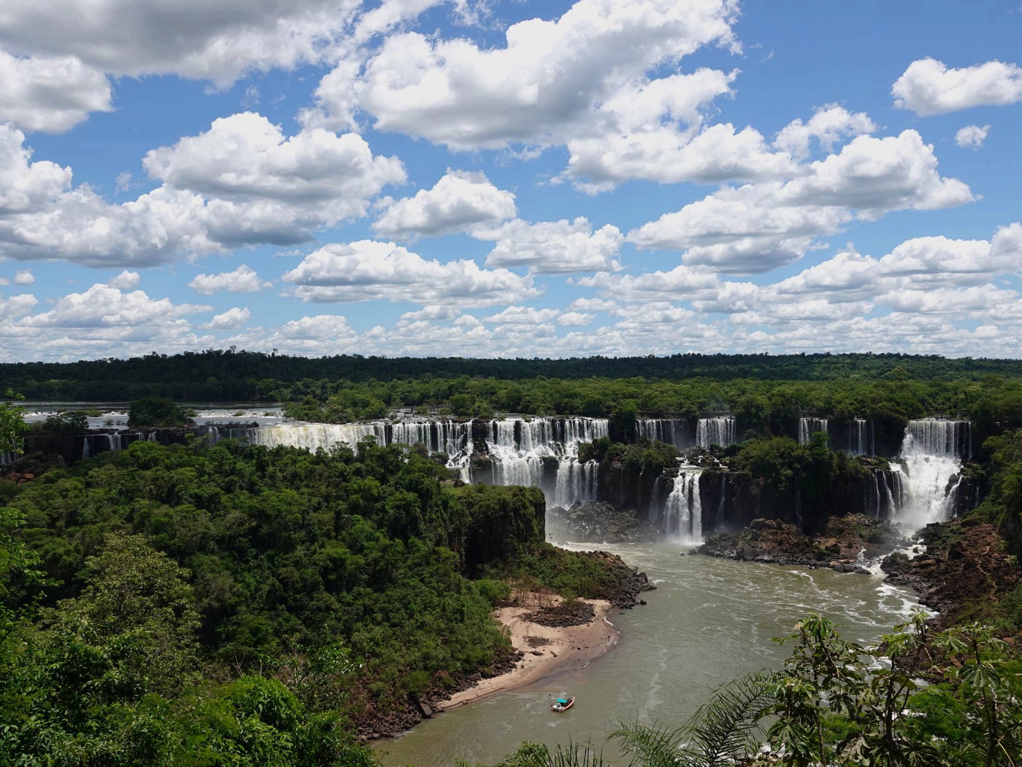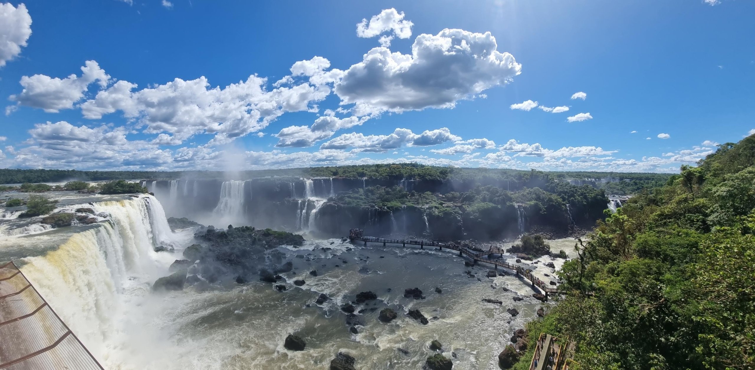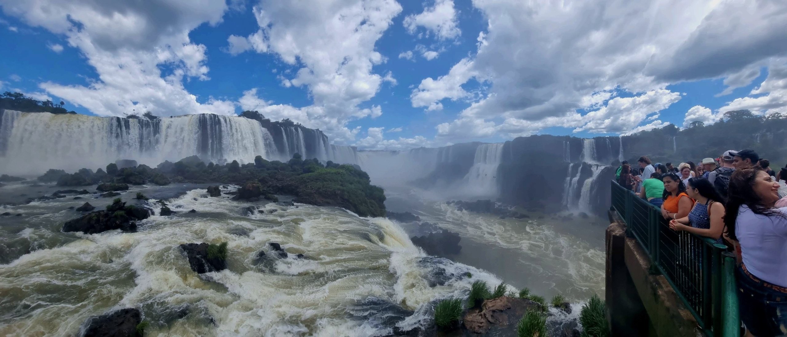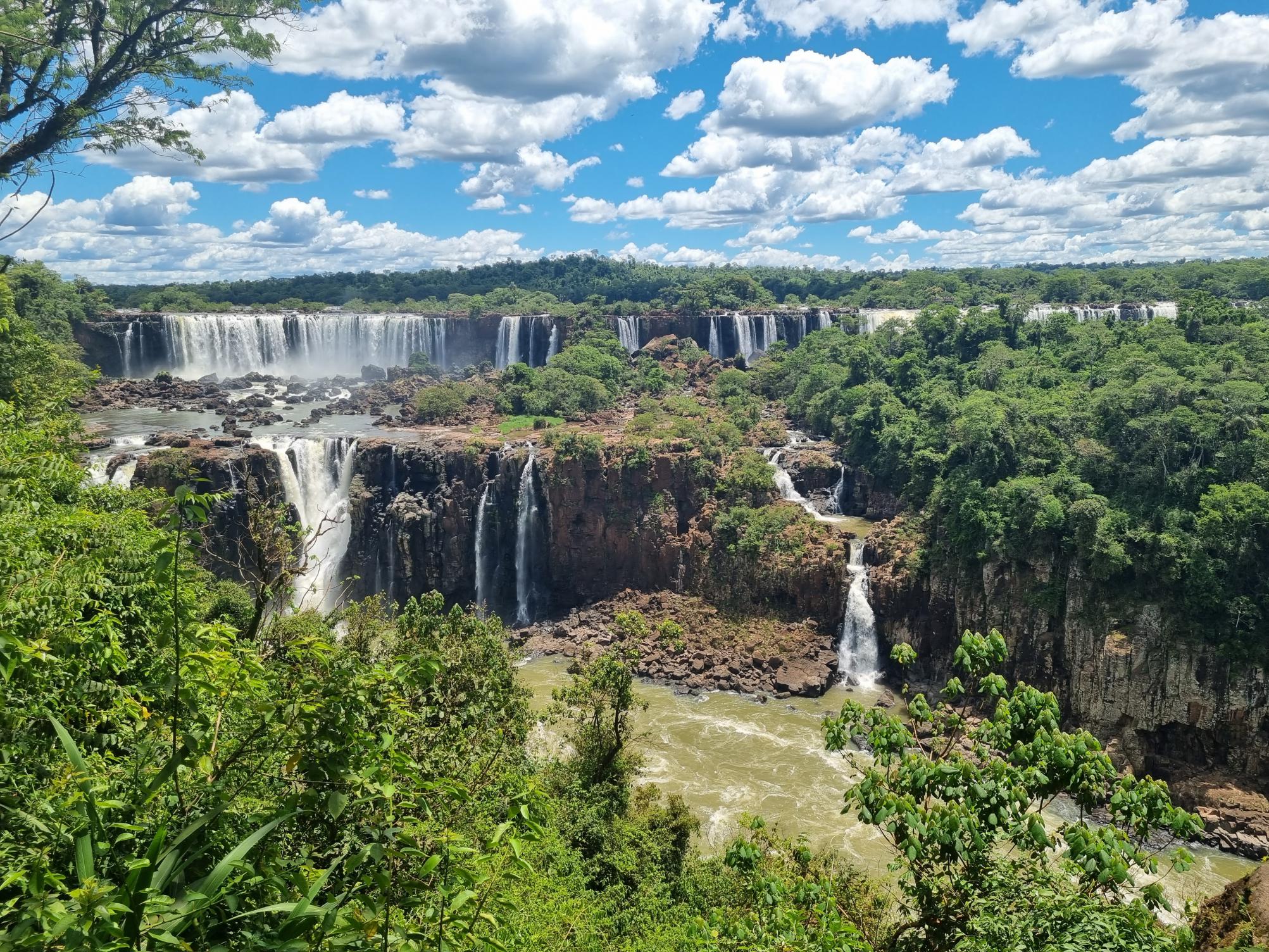 Река Игуасу извергает в среднем 1700 кубических метров воды в секунду, больше чем Ниагарский водопад и водопад Виктория вместе взятые. Большая часть водопада расположена со стороны Аргентины, но лучший вид открывается с бразильской стороны. Водопад был открыт в 1541г. испанским конкистадором доном Альваро Нуньесом Касесо де Вака, отправившимся в южноамериканские джунгли на поиски золота и приключений.