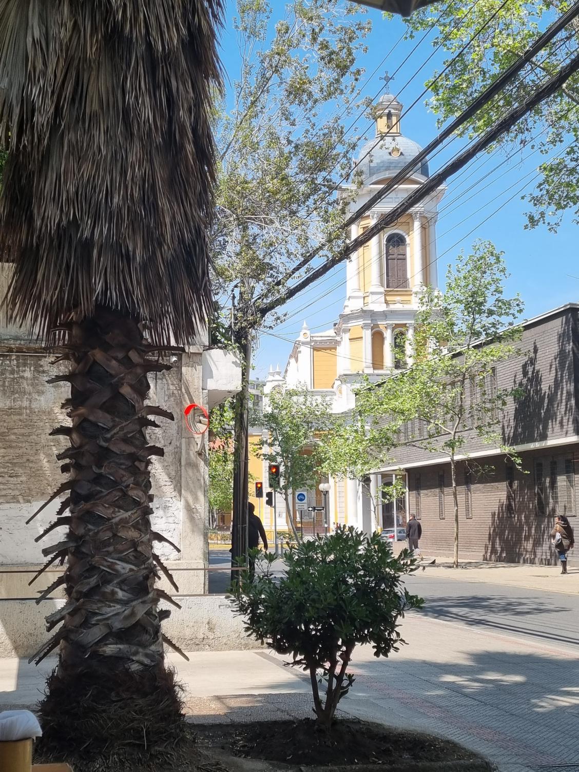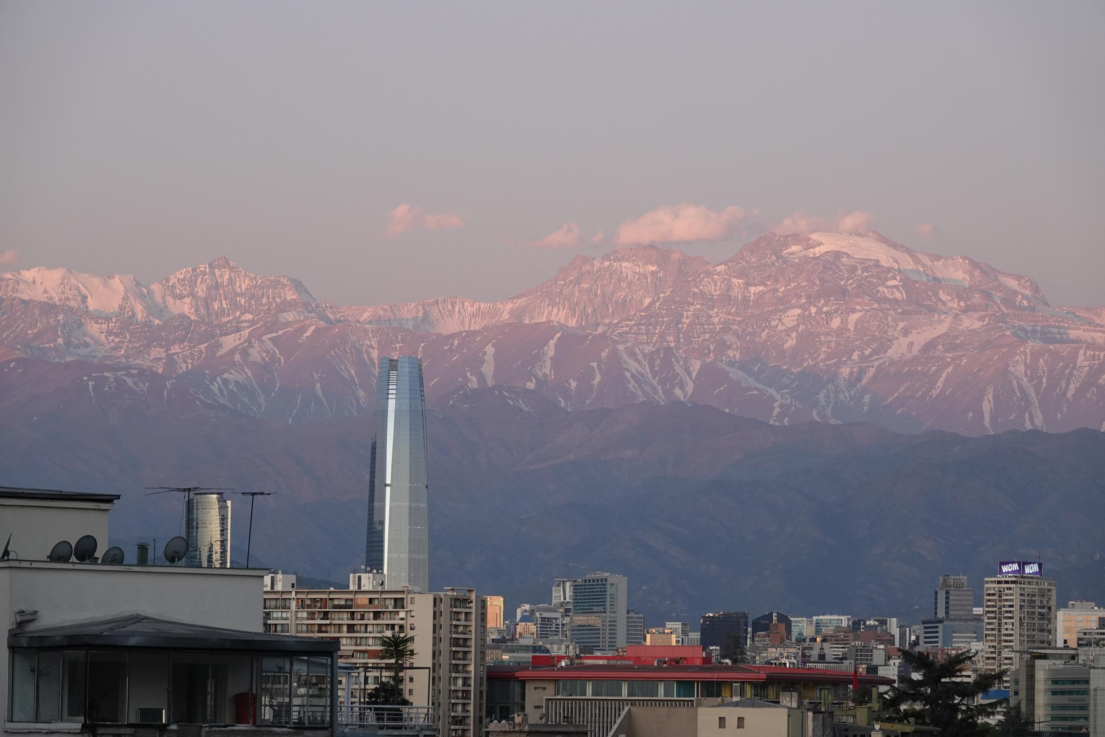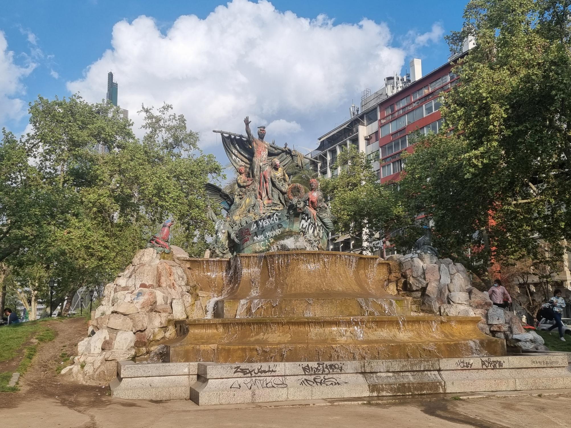 Покоренный удивительной красотой местных пейзажей конкистадор Педро де Вальдивия предпочел для строительства нового города одну из живописных долин, окруженную горными грядами. Впоследствии это первое поселение европейцев на земле чилийских индейцев, ставшее затем столицей Чили и одним из красивейших крупных городов, было полностью разрушено в результате постоянных военных конфликтов между коренным населением и испанцами и отстраивалось заново.
